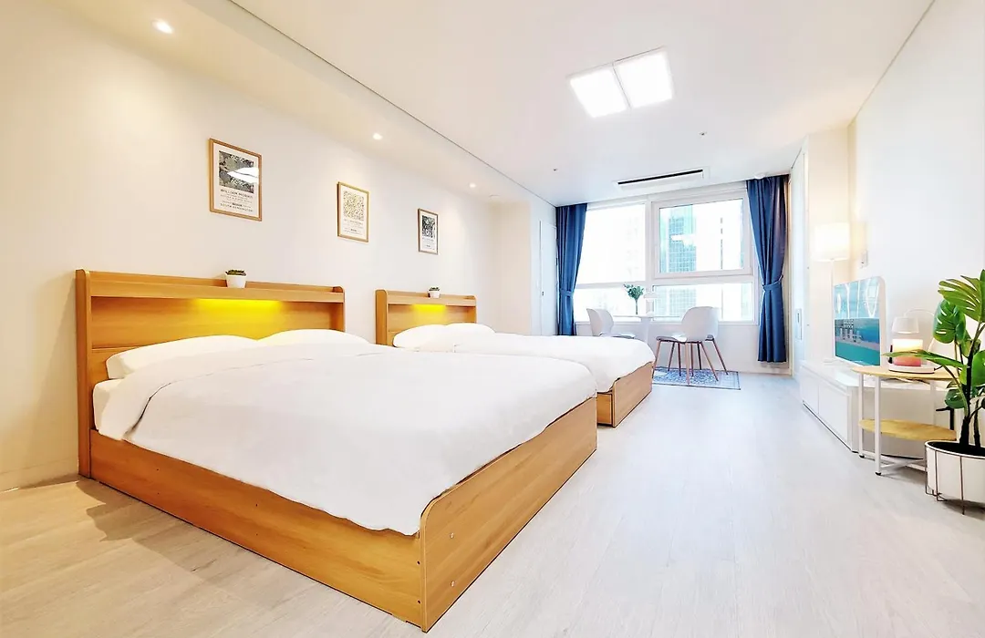 簡単な食事を用意できる設備の整った台所もあります。 Siyeonyongimsiteseuteuバス停は150メートルほどの距離にあります。